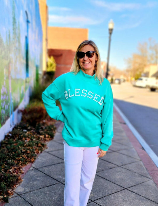 Blessed & Cozy Teal Sweatshirt