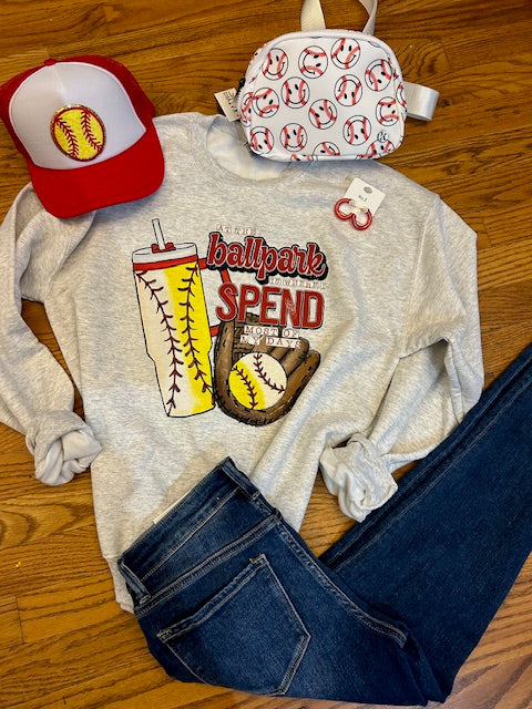 The Ballpark Bliss Crewneck is the perfect addition to any baseball or softball fan's wardrobe. Made with soft and comfortable fabric, this sweatshirt is designed to showcase your love for the game and the hours you spend at the ballpark. Show off your passion in style and stay cozy during those chilly game nights. See other listings for Baseball belt bag and softball or baseball Trucker hat to complete the outfit!
